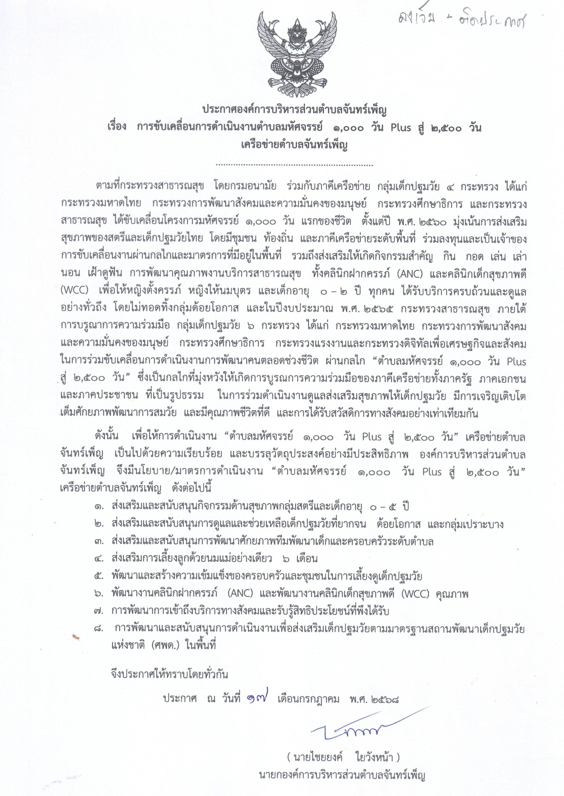 ประกาศ อบต.จันทร์เพ็ญ เรื่อง การขับเคลื่อนการดำเนินงานมหัสจรรย์ 1,000 วัน Plus สู่ 2500 วัน เครือข่ายตำบลจันทร์เพ็ญ 21 กรกฎาคม 68อบต. จันทร์เพ็ญข่าวประชาสัมพันธ์, ประกาศ/ระเบียบ/ดาวน์โหลด อ่านแล้ว : 1,387 Facebook iconFacebookTwitter iconTwitterLINE iconLine