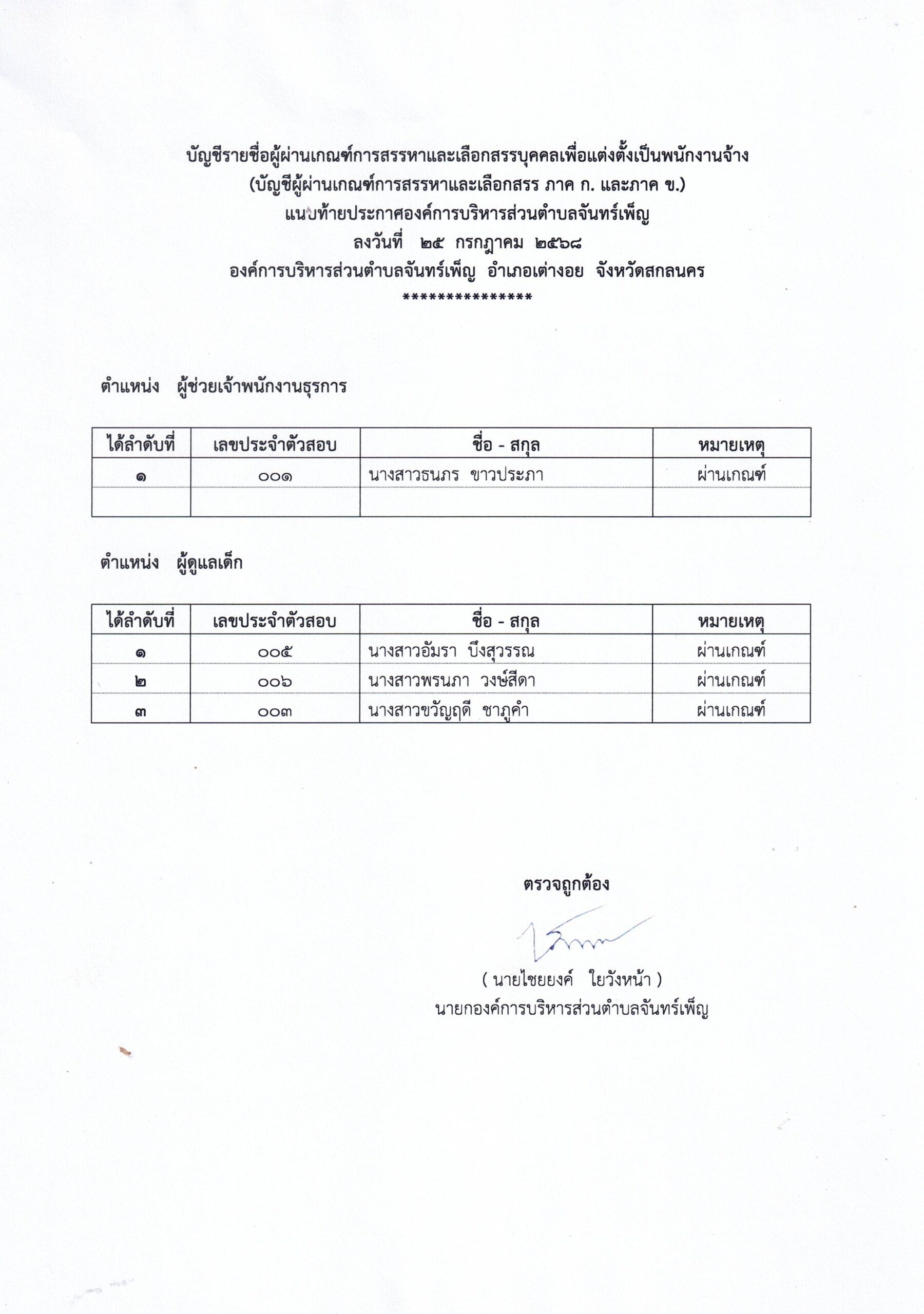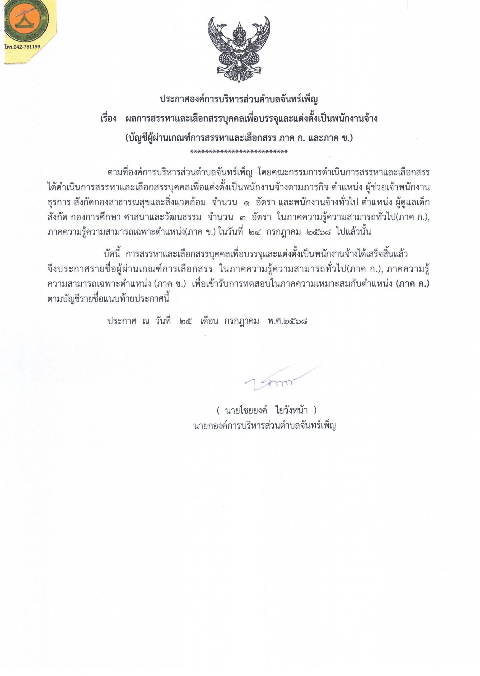 ประกาศ อบต.จันทร์เพ็ญ เรื่อง ผลการสรรหาและลือกสรรบุคคลเพื่อบรรจุและแต่งตั้งเป็นพนักงานจ้าง (บัญชีผู้ผ่านเกณฑ์การสรรหาและเลือกสรร ภาค ก. และภาค ข.) 25 กรกฎาคม 6825 กรกฎาคม 25อบต. จันทร์เพ็ญข่าวประชาสัมพันธ์, ประกาศ/ระเบียบ/ดาวน์โหลด อ่านแล้ว : 102 Facebook iconFacebookTwitter iconTwitterLINE iconLine