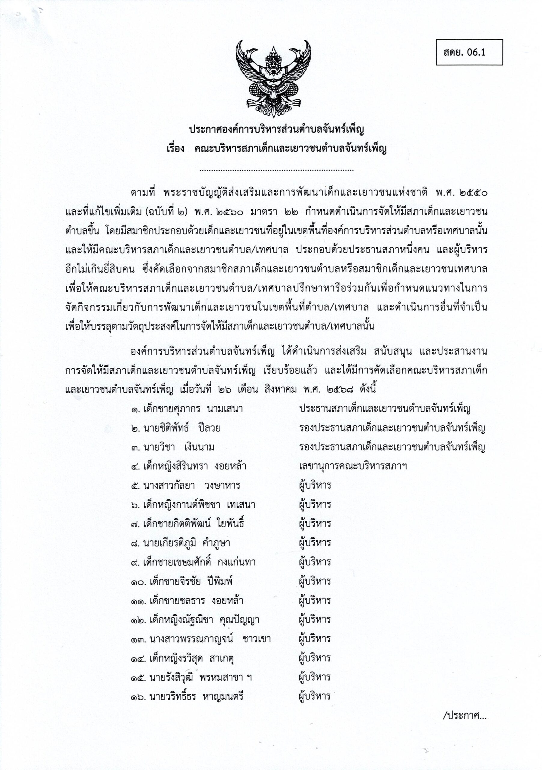 ประกาศ อบต.จันทร์เพ็ญ เรื่อง คณะบริหารสภาเด็กและเยาวชนตำบลจันทร์เพ็ญ 16 กันยายน 68อบต. จันทร์เพ็ญข่าวประชาสัมพันธ์, ประกาศ/ระเบียบ/ดาวน์โหลด อ่านแล้ว : 109 Facebook iconFacebookTwitter iconTwitterLINE iconLine