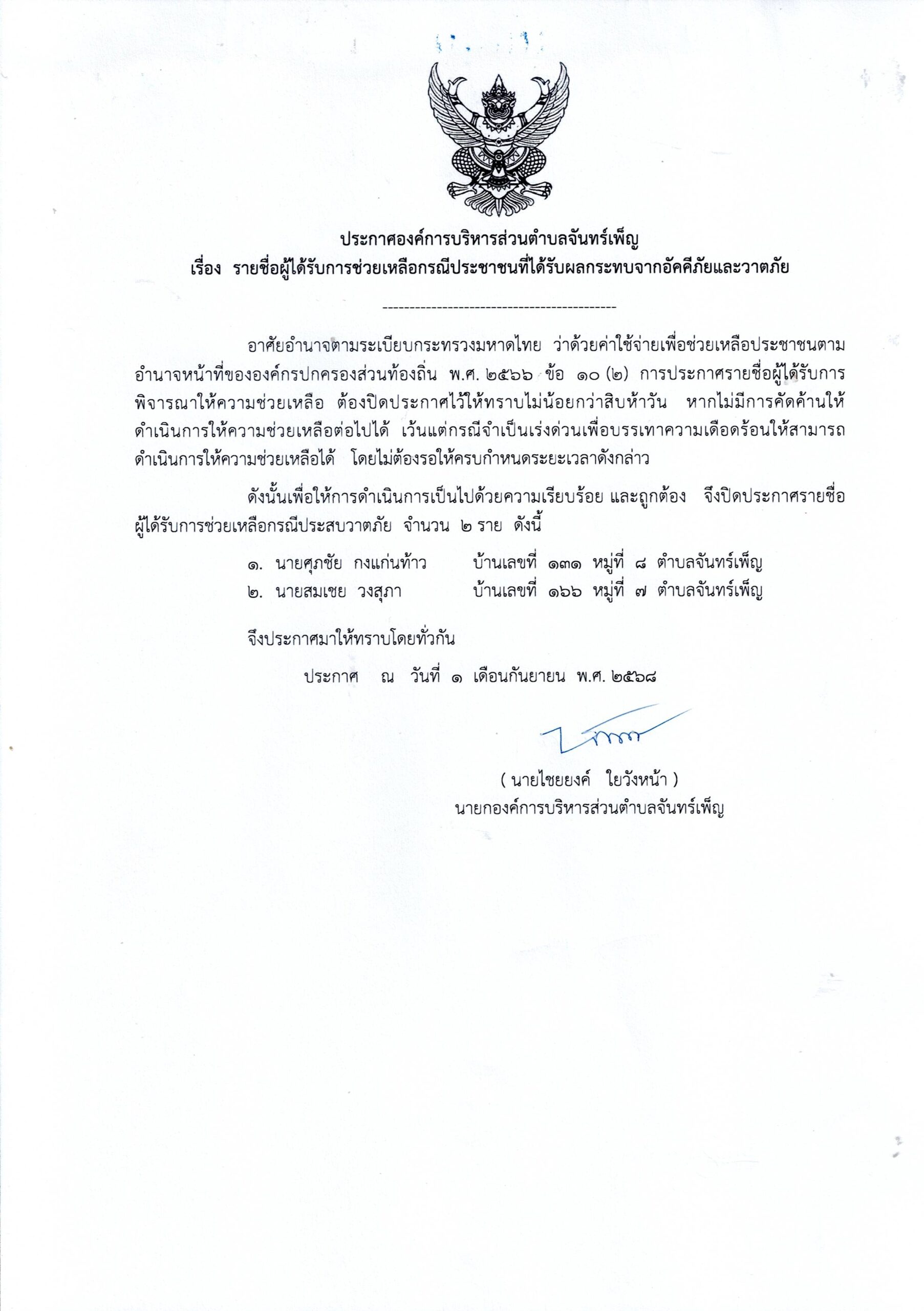 ประกาศ อบต.จันทร์เพ็ญ เรื่อง รายชื่อผู้ได้รับการช่วยเหลือกรณีประชาชนที่ได้รับผลกระทบจากอัคคีและวาตภัย 1 กันยายน 6825 กันยายน 25อบต. จันทร์เพ็ญข่าวประชาสัมพันธ์, ประกาศ/ระเบียบ/ดาวน์โหลด อ่านแล้ว : 31 Facebook iconFacebookTwitter iconTwitterLINE iconLine