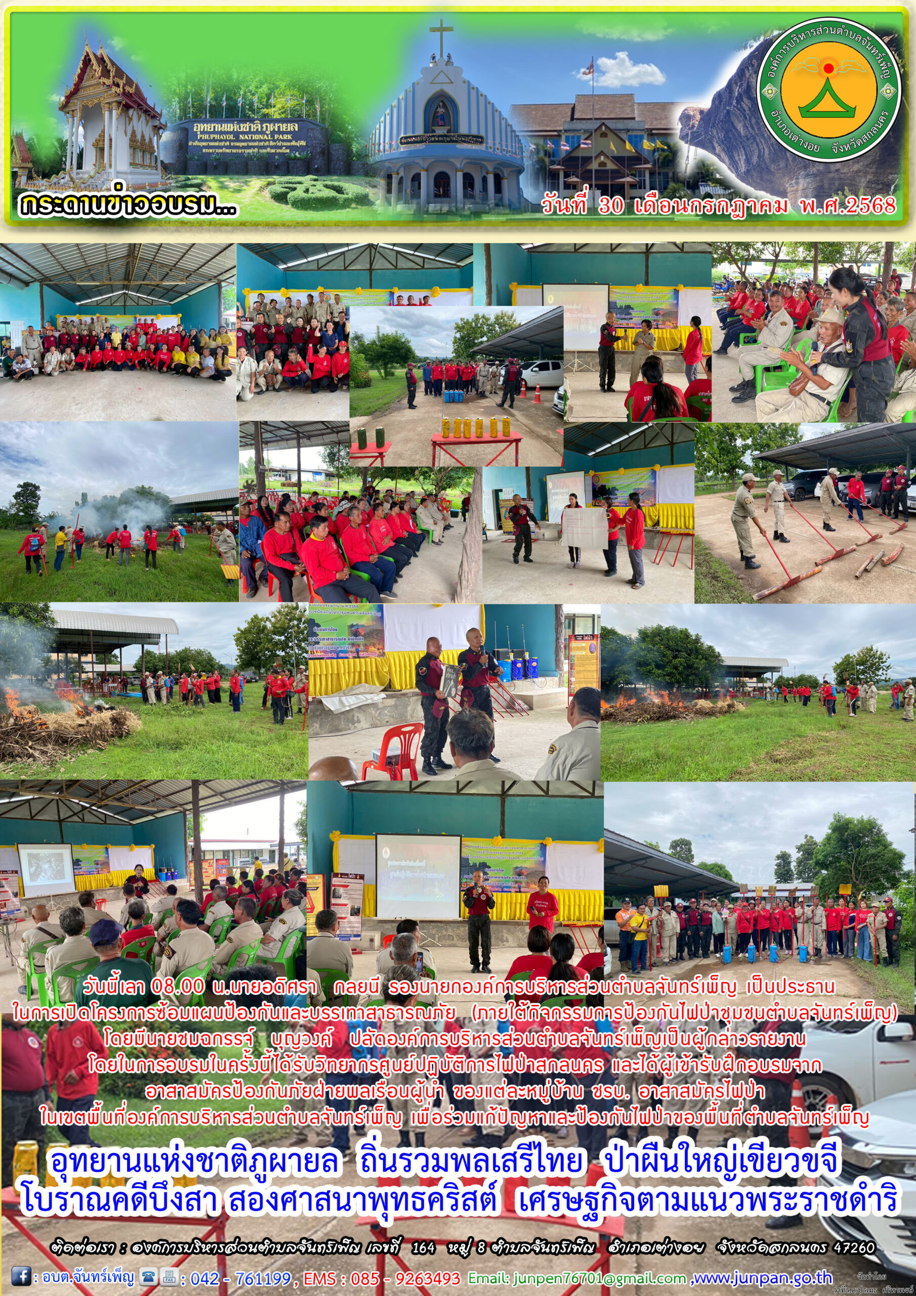 โครงการซ้อมแผนป้องกันและบรรเทาสาธารณภัย ประจำปีงบประมาณ พ.ศ. 2568 (ภายใต้กิจกรรมการป้องกันไฟป่าชุมชนตำบลจันทร์เพ็ญ) องค์การบริหารส่วนตำบลจันทร์เพ็ญ อำเภอเต่างอย จังหวัดสกลนคร 1 สิงหาคม 6819 ธันวาคม 25อบต. จันทร์เพ็ญข่าวประชาสัมพันธ์, ภาพกิจกรรม อ่านแล้ว : 37 Facebook iconFacebookTwitter iconTwitterLINE iconLine