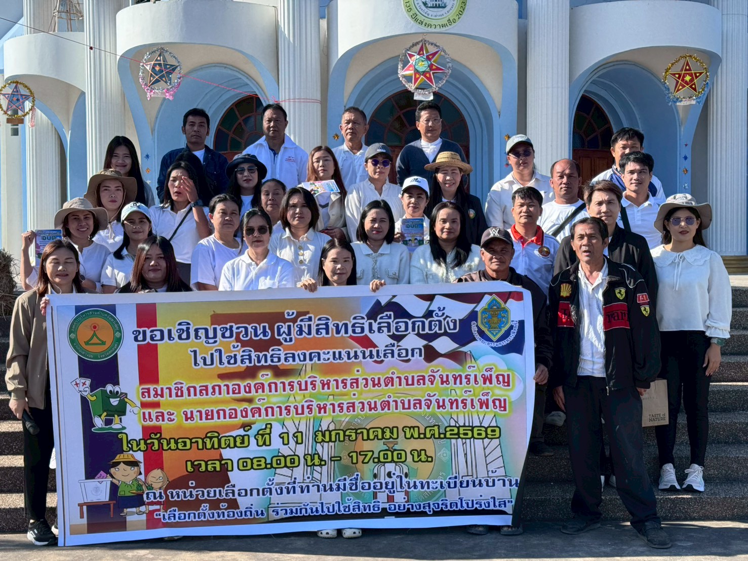 วันที่ 26 ธันวาคม 2568 นายพิสิษธิ์ สุรินทร์ ปลัดองค์การบริหารส่วนตำบล ปฏิบัติหน้าที่ นายกองค์การบริหารส่วนตำบลจันทร์เพ็ญ , นายสำเร็จ มุงคุณ ประธานคณะกรรมการการเลือกตั้งประจำองค์การบริหารส่วนตำบลจันทร์เพ็ญ , นายอภิชาติ วงค์กำภู กรรมการการเลือกตั้งประจำองค์การบริหารส่วนตำบลจันทร์เพ็ญ , นางพรธิภา จิอุ่นงอย กรรมการการเลือกตั้งประจำองค์การบริหารส่วนตำบลจันทร์เพ็ญ พร้อมด้วยพนักงานส่วนตำบล พนักงานจ้าง ร่วมกิจกรรม รณรงค์เชิญชวน ผู้มีสิทธิเลือกตั้งไปใช้สิทธิลงคะแนน สมาชิกสภาองค์การบริหารส่วนตำบลจันทร์เพ็ญ และ นายกองค์การบริหารส่วนตำบลจันทรเพ็ญ ในวันอาทิตย์ ที่ 11 มกราคม 2569 ตั้งแต่เวลา 08.00 น. – 17.00 น.