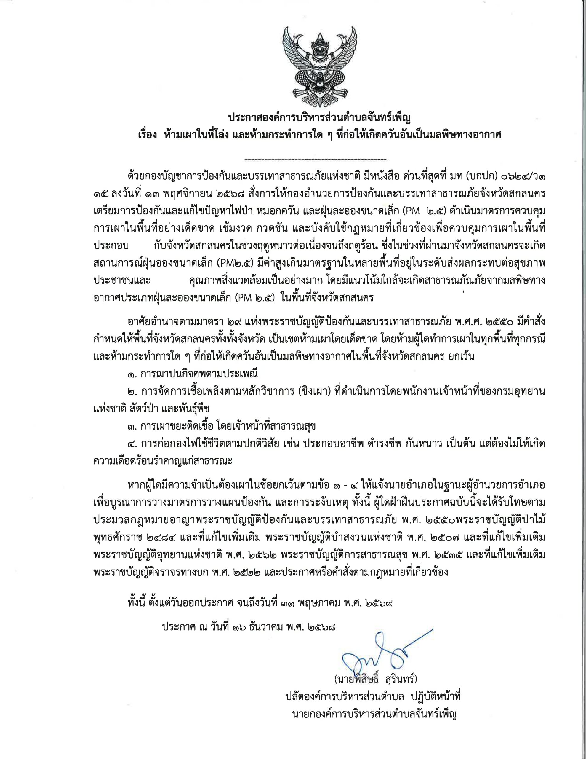ประกาศ อบต.จันทร์เพ็ญ เรื่อง ห้ามเผาในที่โล่ง และห้ามกระทำการใดๆ ที่ก่อให้เกิดควันอันเป็นมลพิษทางอากาศ 16 ธันวาคม 6812 มกราคม 26อบต. จันทร์เพ็ญข่าวประชาสัมพันธ์ อ่านแล้ว : 57 Facebook iconFacebookTwitter iconTwitterLINE iconLine
