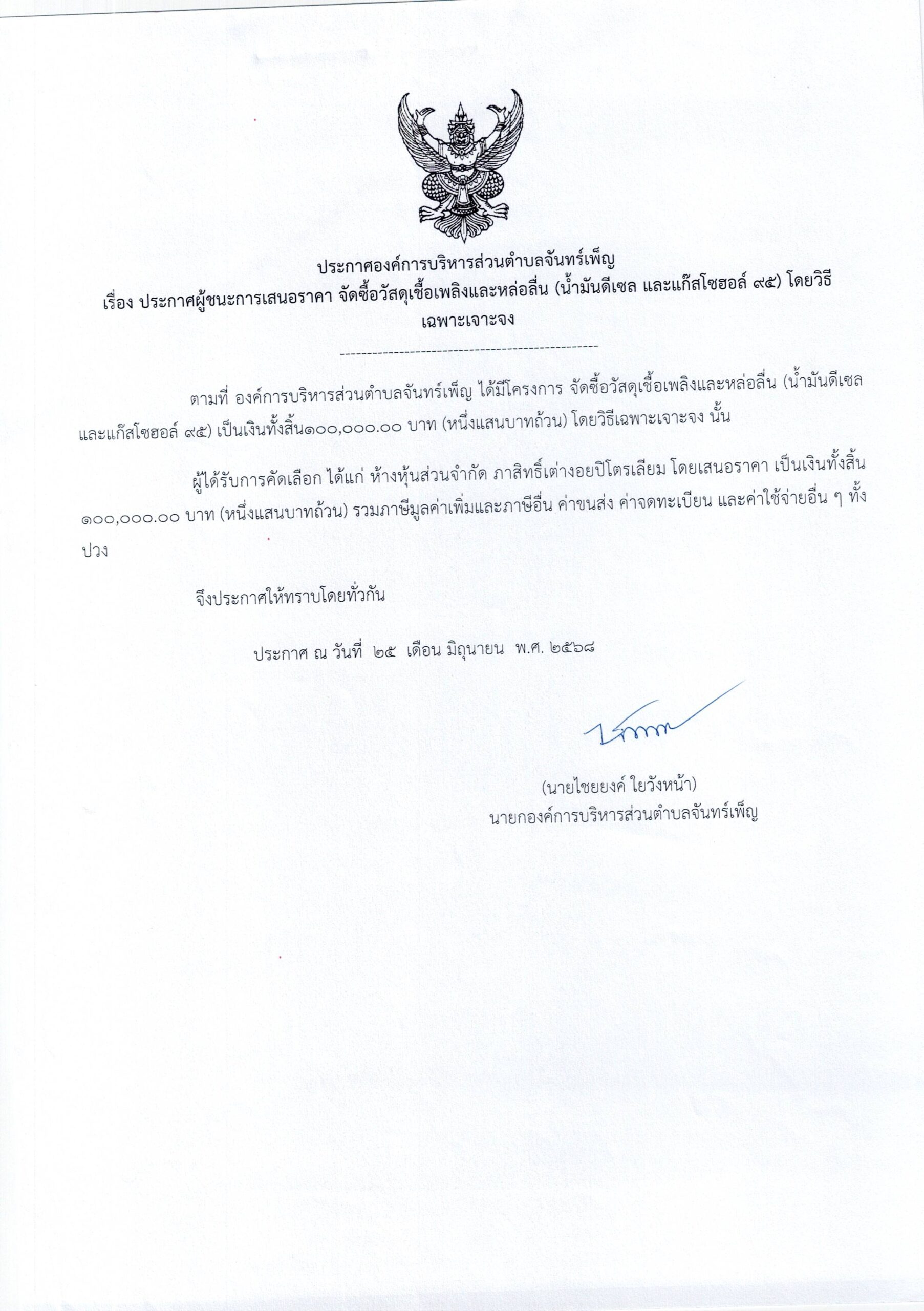 ประกาศ อบต.จันทร์เพ็ญ เรื่อง ประกาศผู้ชนะการเสนอราคา จัดซื้อวัสดุเชื้อเพลิงและหล่อลื่น (น้ำมันดีเซล และแก๊สโซฮอล์ ๙๕) 25 มิถุนายน 6817 พฤศจิกายน 25อบต. จันทร์เพ็ญประกาศจัดซื้อจัดจ้าง อ่านแล้ว : 5 Facebook iconFacebookTwitter iconTwitterLINE iconLine