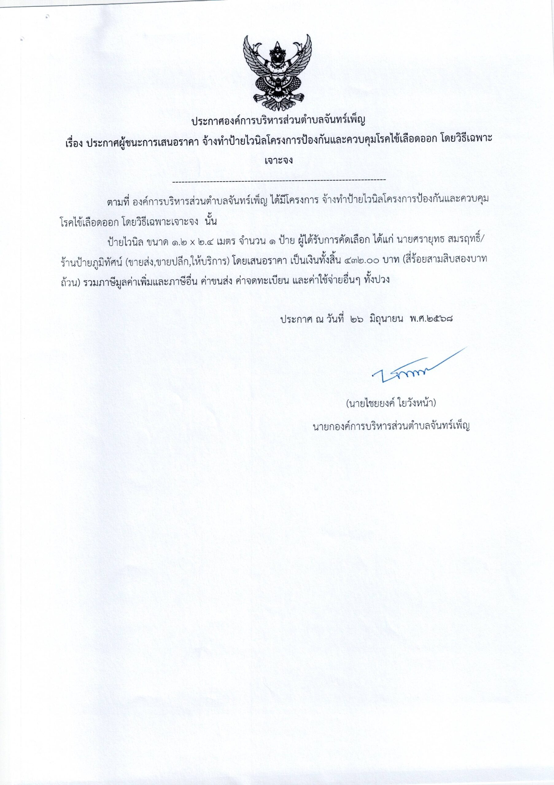 ประกาศ อบต.จันทร์เพ็ญ เรื่อง ประกาศผู้ชนะการเสนอราคา จ้างทำป้ายไวนิลโครงการป้องกันและควบคุมโรคไข้เลือดออก 26 มิถุนายน 6817 พฤศจิกายน 25อบต. จันทร์เพ็ญประกาศจัดซื้อจัดจ้าง อ่านแล้ว : 6 Facebook iconFacebookTwitter iconTwitterLINE iconLine