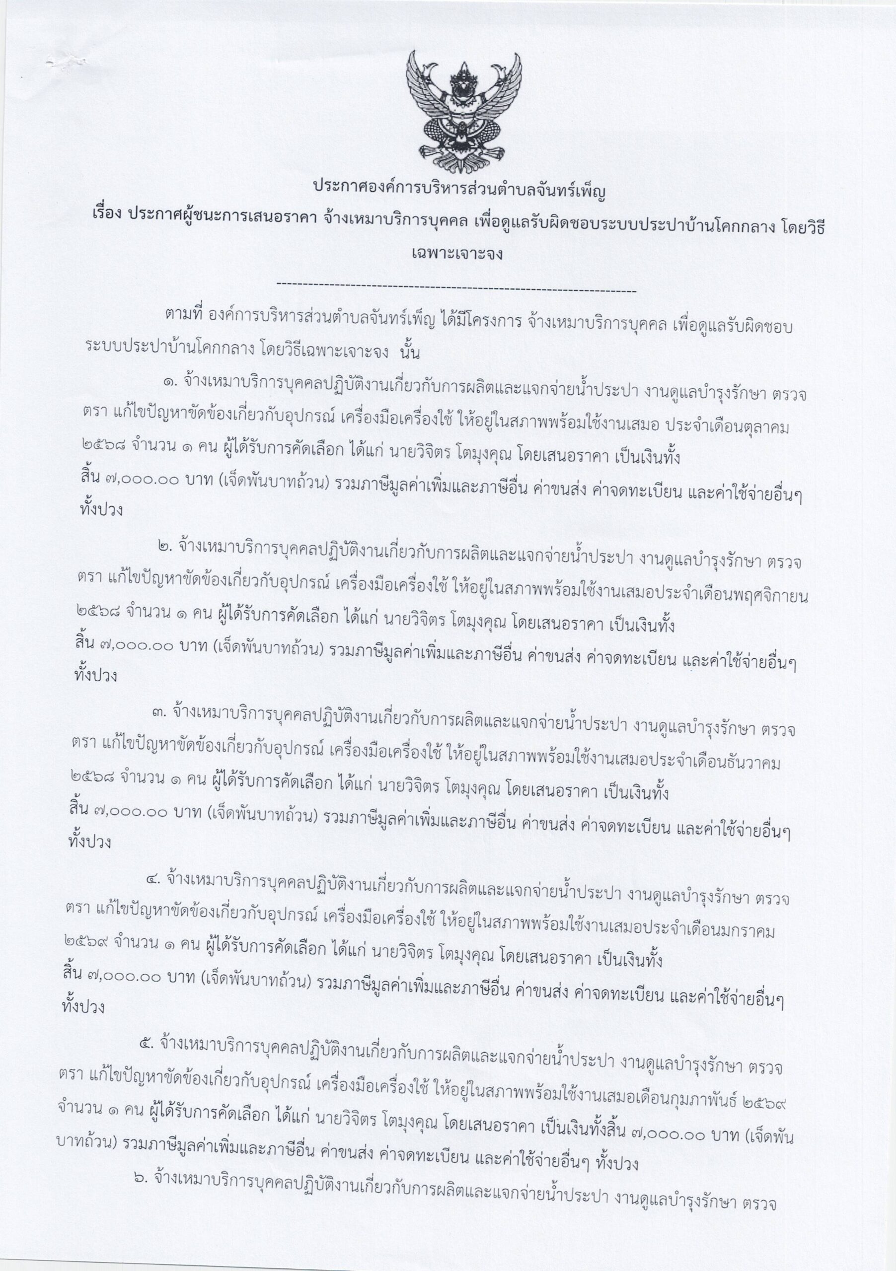 ประกาศ อบต.จันทร์เพ็ญ เรื่อง ประกาศผู้ชนะการเสนอราคา จ้างเหมาบริการบุคคล เพื่อดูแลรับผิดชอบระบบประปาบ้านโคกกลาง โดยวิธีเฉพาะเจาะจง 19 กันยายน 689 ธันวาคม 25อบต. จันทร์เพ็ญประกาศจัดซื้อจัดจ้าง อ่านแล้ว : 1 Facebook iconFacebookTwitter iconTwitterLINE iconLine