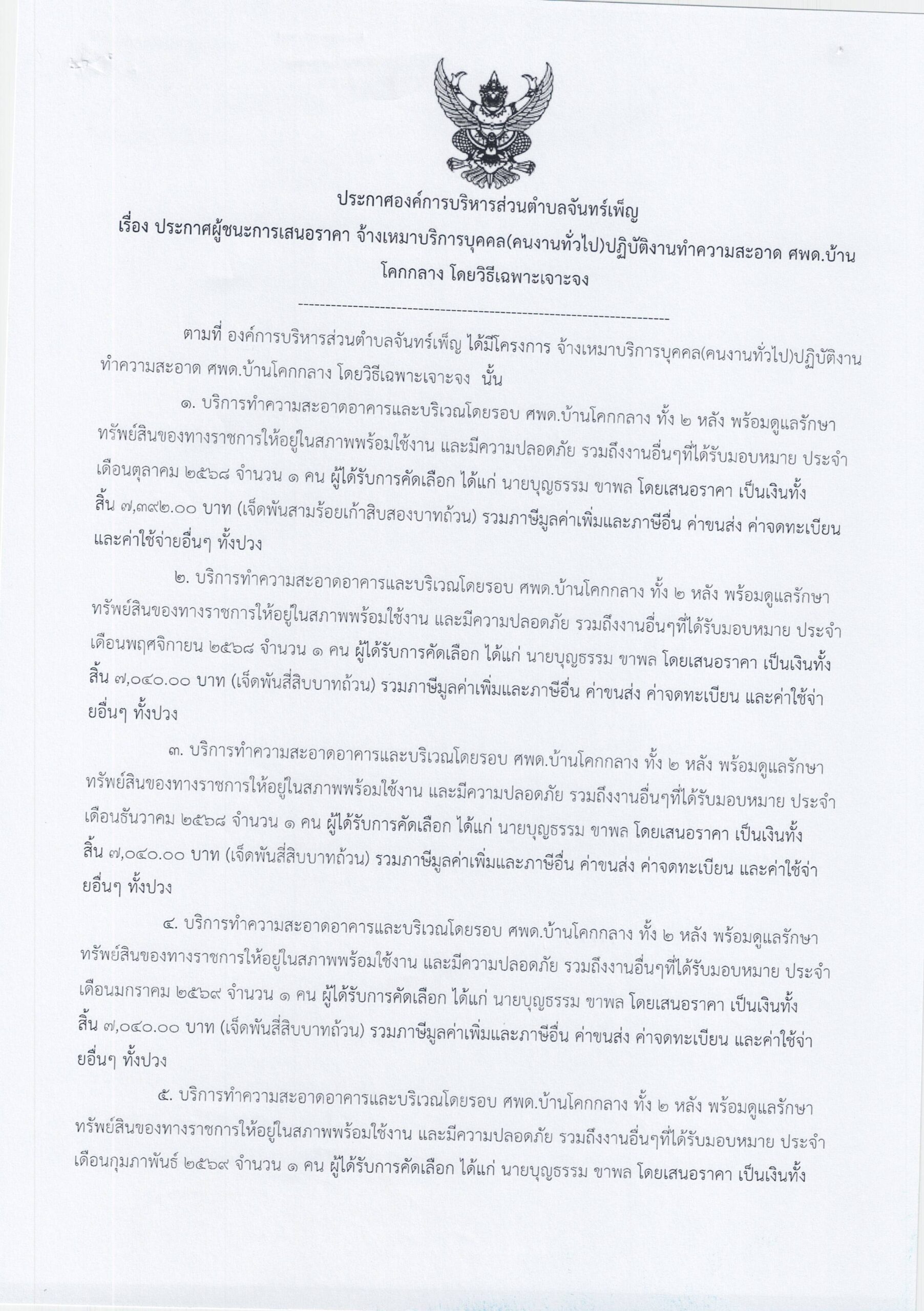 ประกาศ อบต.จันทร์เพ็ญ เรื่อง ประกาศผู้ชนะการเสนอราคา จ้างเหมาบริการบุคคล(คนงานทั่วไป)ปฏิบัติงานทำความสะอาด ศพด.บ้านโคกกลาง ดดยเฉพาะเจาะจง 19 กันยายน 689 ธันวาคม 25อบต. จันทร์เพ็ญประกาศจัดซื้อจัดจ้าง อ่านแล้ว : 1 Facebook iconFacebookTwitter iconTwitterLINE iconLine
