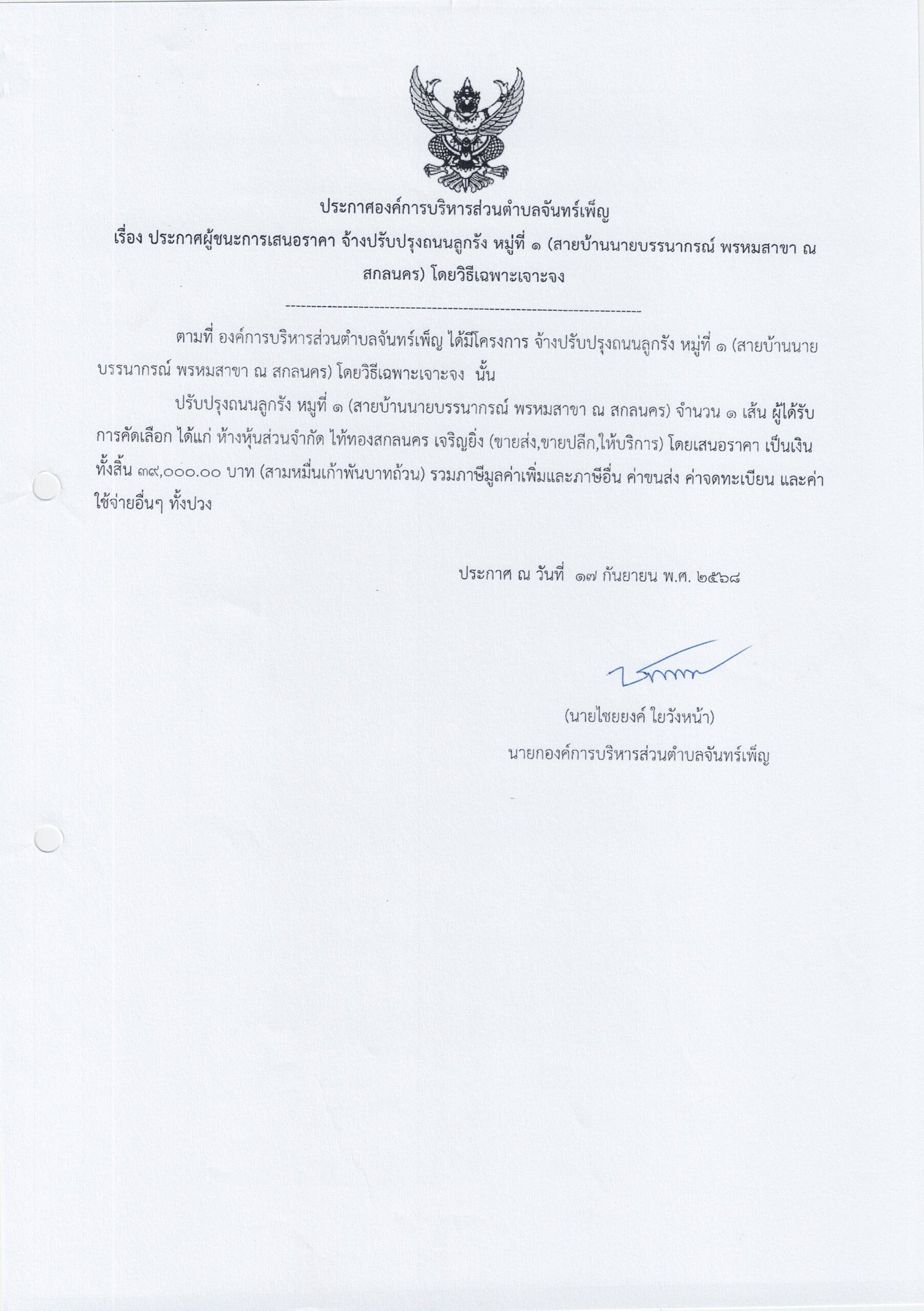 ประกาศ อบต.จันทร์เพ็ญ เรื่อง ประกาศผู้ชนะการเสนอราคา จ้างปรับปรุงถนนลูกรัง หมู่ที่๑ (สายบ้านนายบรรนากรณ์ พรหมสาขา ณ สกลนคร) โดยวิธีเฉพาะเจาะจง 17 กันยายน 689 ธันวาคม 25อบต. จันทร์เพ็ญประกาศจัดซื้อจัดจ้าง อ่านแล้ว : 1 Facebook iconFacebookTwitter iconTwitterLINE iconLine