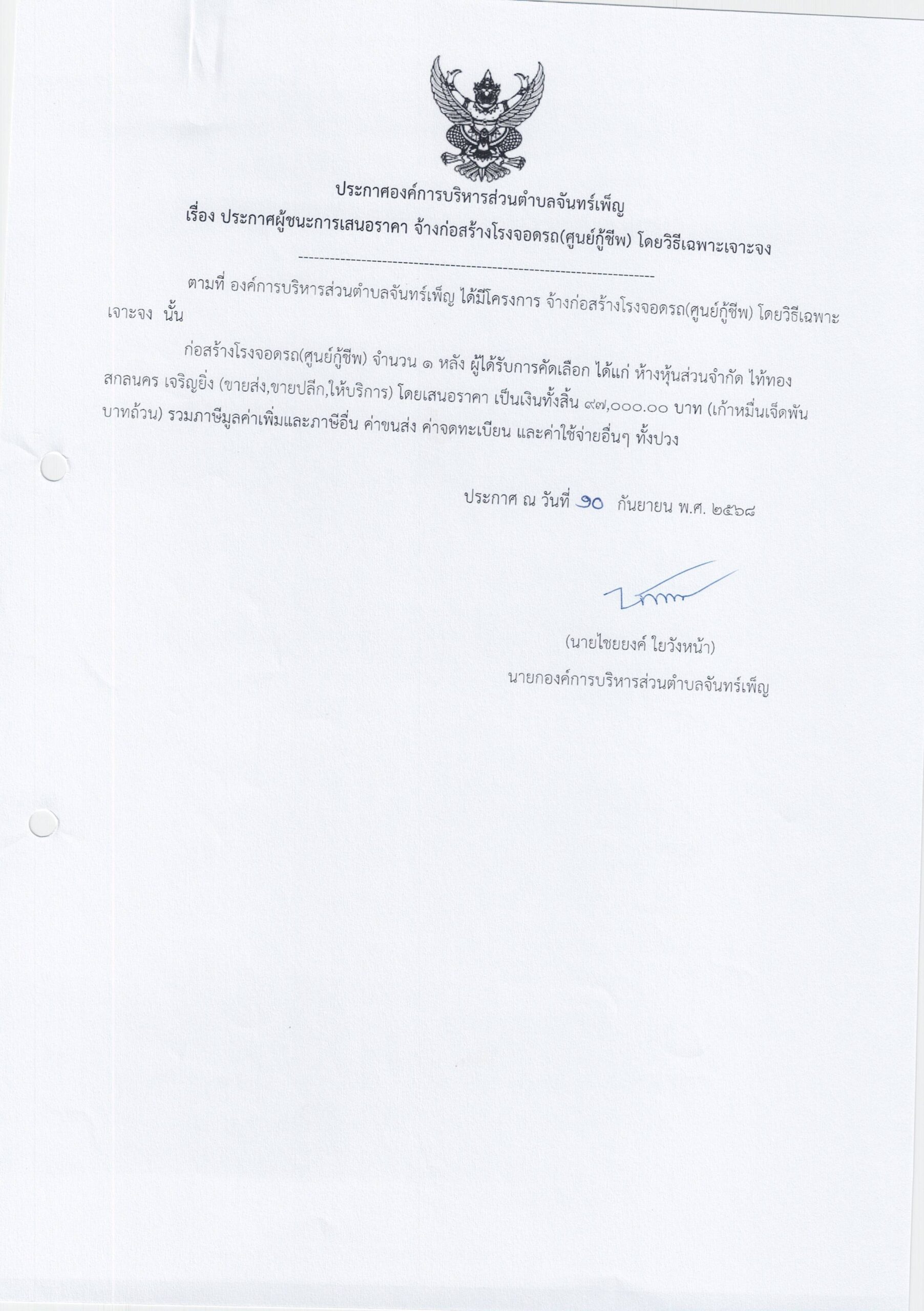 ประกาศ อบต.จันทร์เพ็ญ เรื่อง ประกาศผู้ชนะการเสนอราคา จ้างก่อสร้างโรงจอดรถ(ศูนย์กู้ชีพ) โดยวิธีเฉพาะเจาะจง 10 กันยายน 689 ธันวาคม 25อบต. จันทร์เพ็ญประกาศจัดซื้อจัดจ้าง อ่านแล้ว : 1 Facebook iconFacebookTwitter iconTwitterLINE iconLine
