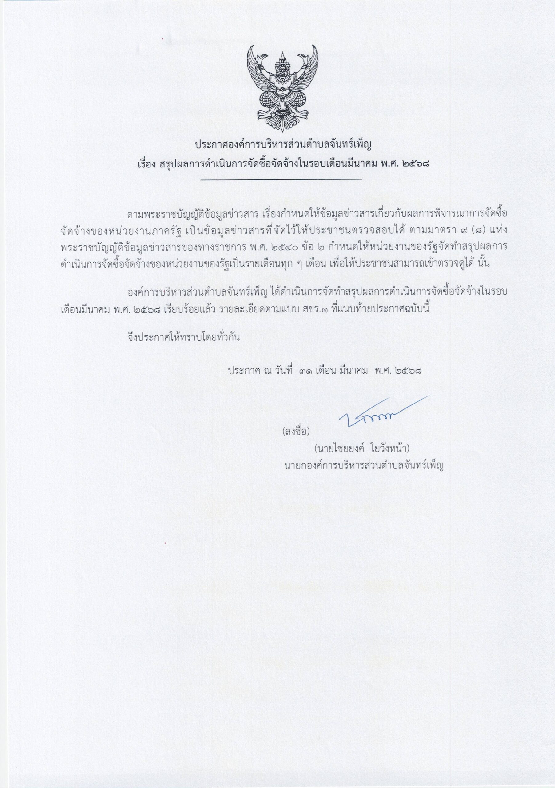 ประกาศ อบต.จันทร์เพ็ญ เรื่อง สรุปผลการดำเนินการจัดซื้อจัดจ้างในรอบเดือนมีนาคม พ.ศ.๒๕๖๘ 31 มีนาคม 689 ธันวาคม 25อบต. จันทร์เพ็ญประกาศจัดซื้อจัดจ้าง อ่านแล้ว : 1 Facebook iconFacebookTwitter iconTwitterLINE iconLine