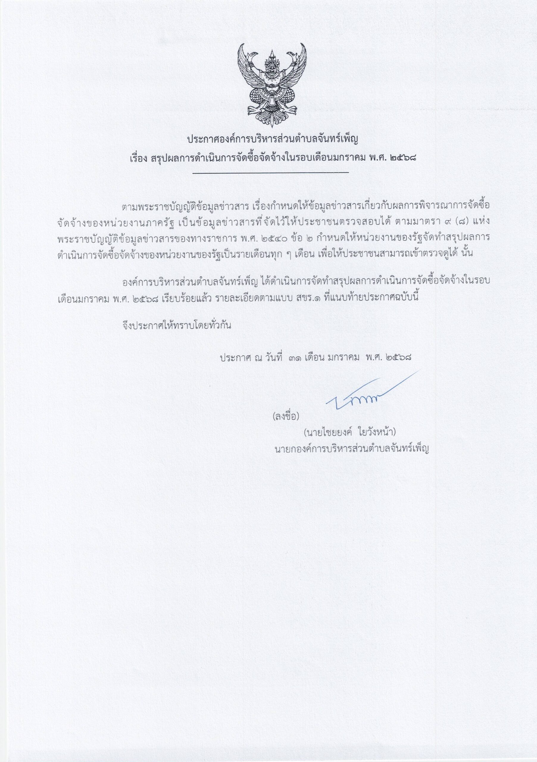 ประกาศ อบต.จันทร์เพ็ญ เรื่อง สรุปผลการดำเนินการจัดซื้อจัดจ้างในรอบเดือนมกราคมพ.ศ.๒๕๖๘ 31 มกราคม 689 ธันวาคม 25อบต. จันทร์เพ็ญประกาศจัดซื้อจัดจ้าง อ่านแล้ว : 1 Facebook iconFacebookTwitter iconTwitterLINE iconLine