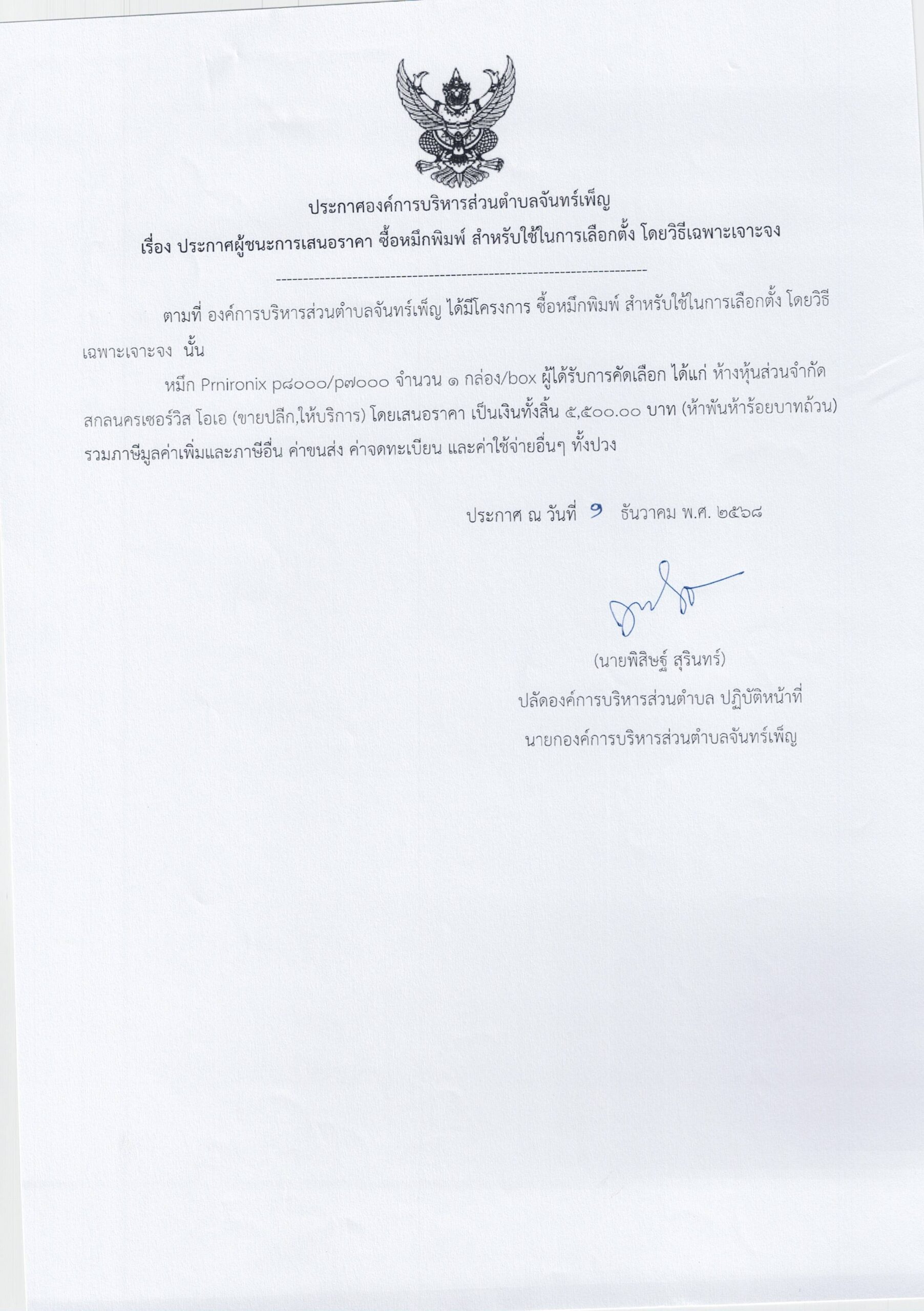 ประกาศ อบต.จันทร์เพ็ญ เรื่อง ประกาศผู้ชนะการเสนอราคา ซื้อหมึกพิมพ์ สำหรับในการเลือกตั้ง 1 ธันวาคม 6813 มกราคม 26อบต. จันทร์เพ็ญประกาศจัดซื้อจัดจ้าง อ่านแล้ว : 38 Facebook iconFacebookTwitter iconTwitterLINE iconLine