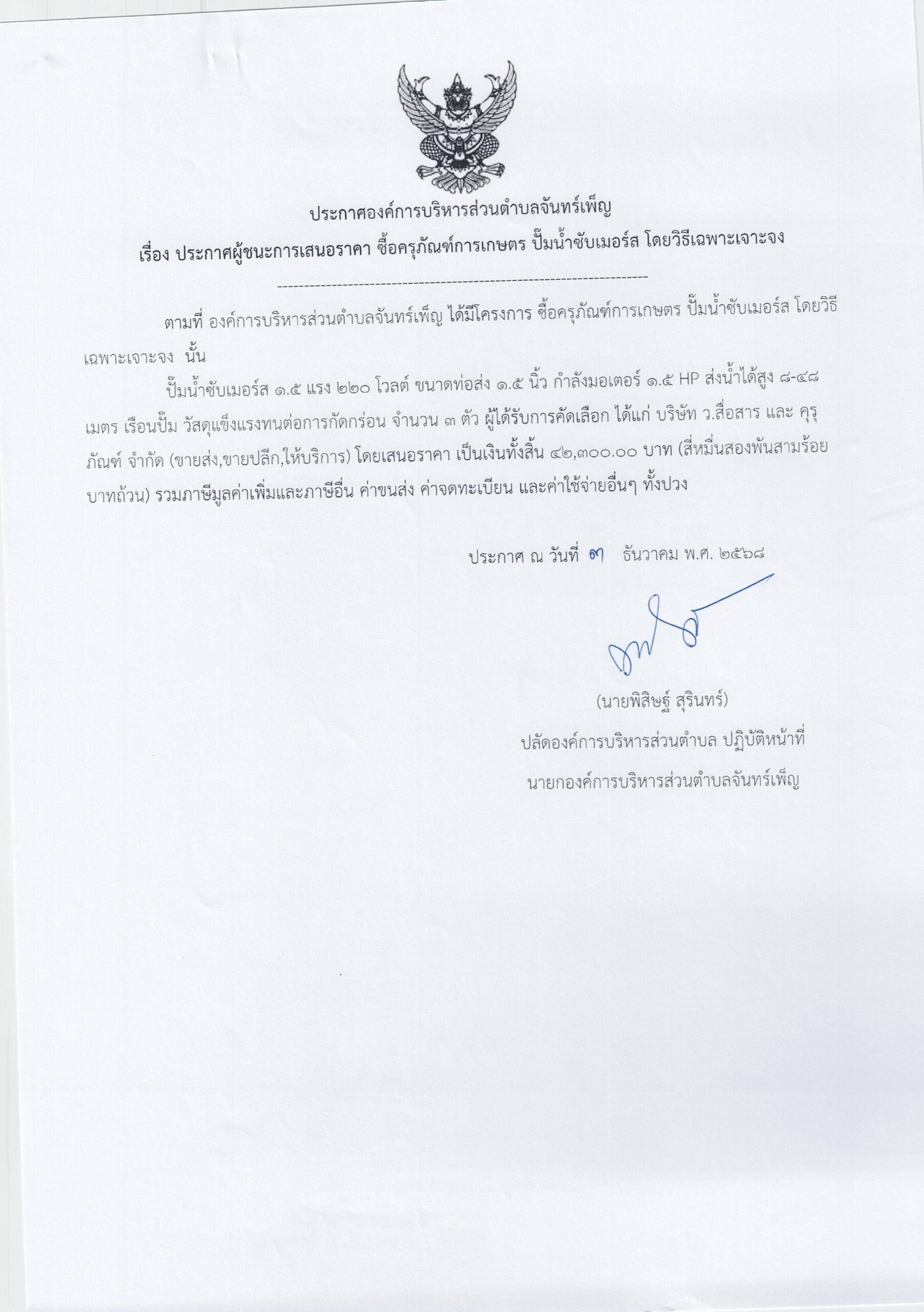 ประกาศ อบต.จันทร์เพ็ญ เรื่อง ประกาศผู้ชนะการเสนอราคา ซื้อครุภัณฑ์การเกษตร ปั้มน้ำซับเมอร์ส 3 ธันวาคม 6813 มกราคม 26อบต. จันทร์เพ็ญประกาศจัดซื้อจัดจ้าง อ่านแล้ว : 35 Facebook iconFacebookTwitter iconTwitterLINE iconLine