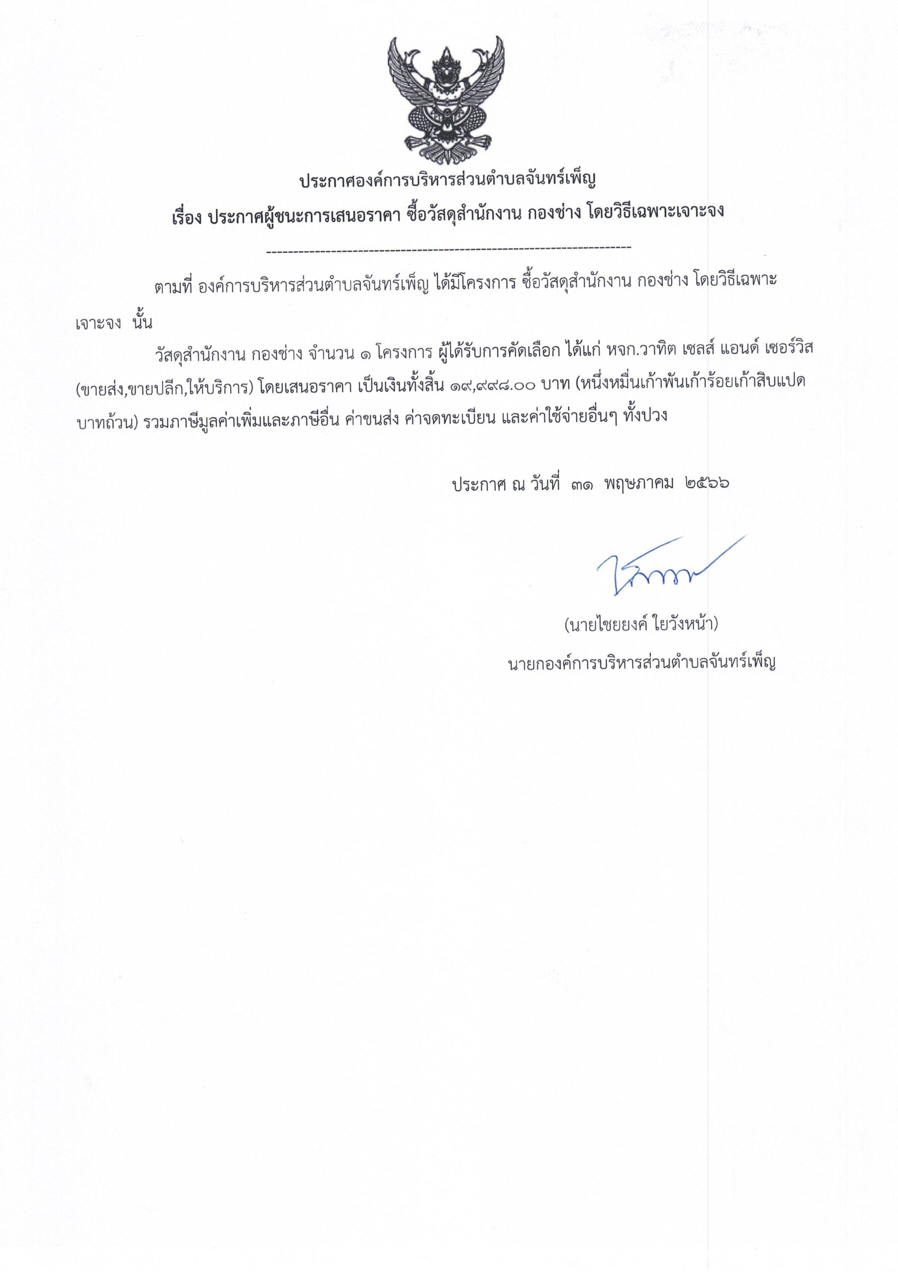 ประกาศ อบต.จันทร์เพ็ญ เรื่อง ประกาศผู้ชนะการเสนอราคา ซื้อวัสดุสำนักงานกองช่าง 6 กรกฎาคม 66อบต. จันทร์เพ็ญประกาศจัดซื้อจัดจ้าง อ่านแล้ว : 150 Facebook iconFacebookTwitter iconTwitterLINE iconLine
