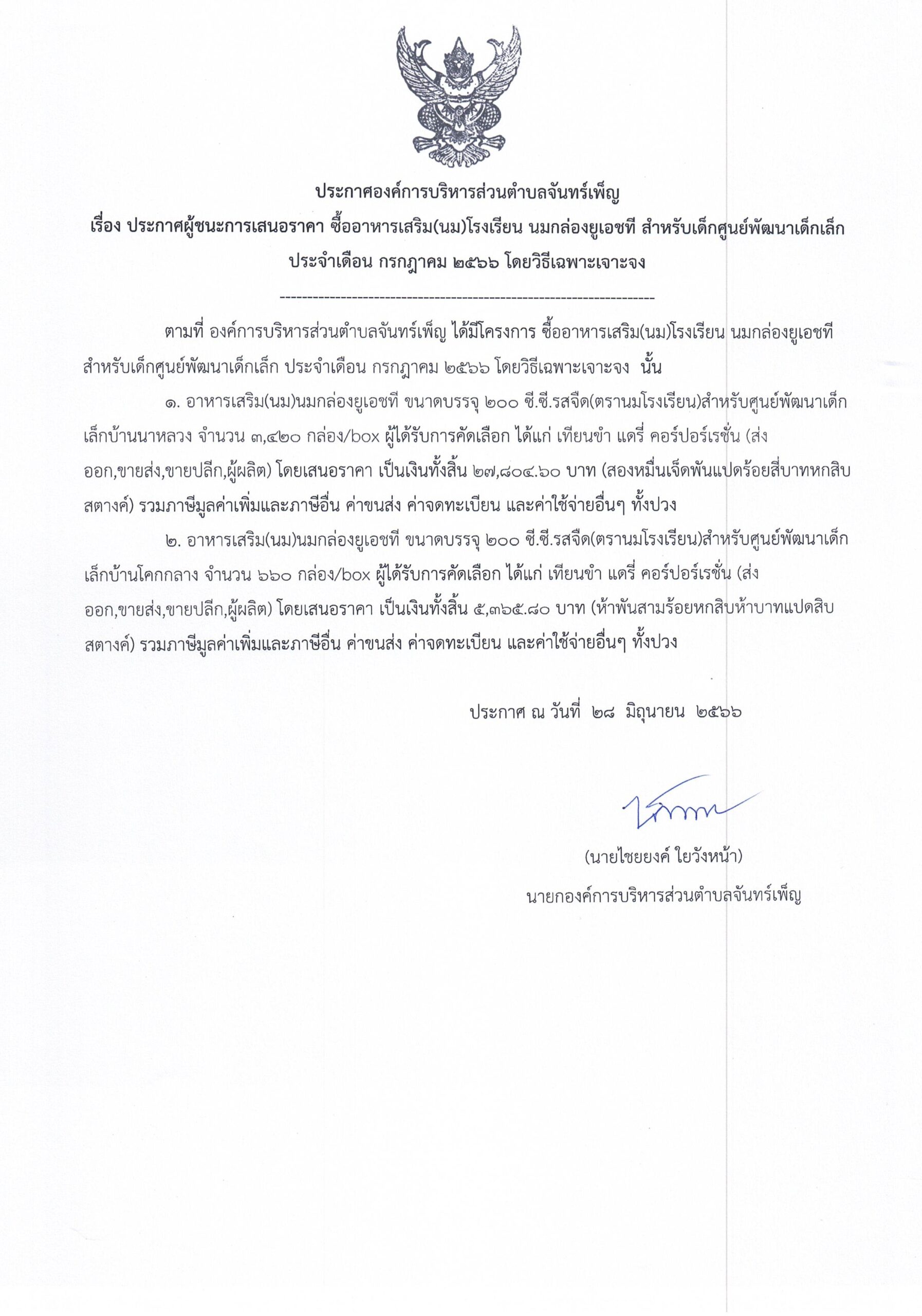 ประกาศผู้ชนะการเสนอราคา ซื้ออาหารเสริม (นม) โรงเรียน นมกล่องยูเอสที สำหรับเด็กศูนย์พัฒนาเด็กเล็ก ประจำเดือน กรกฎาคม 2566 17 กรกฎาคม 66อบต. จันทร์เพ็ญประกาศจัดซื้อจัดจ้าง อ่านแล้ว : 182 Facebook iconFacebookTwitter iconTwitterLINE iconLine