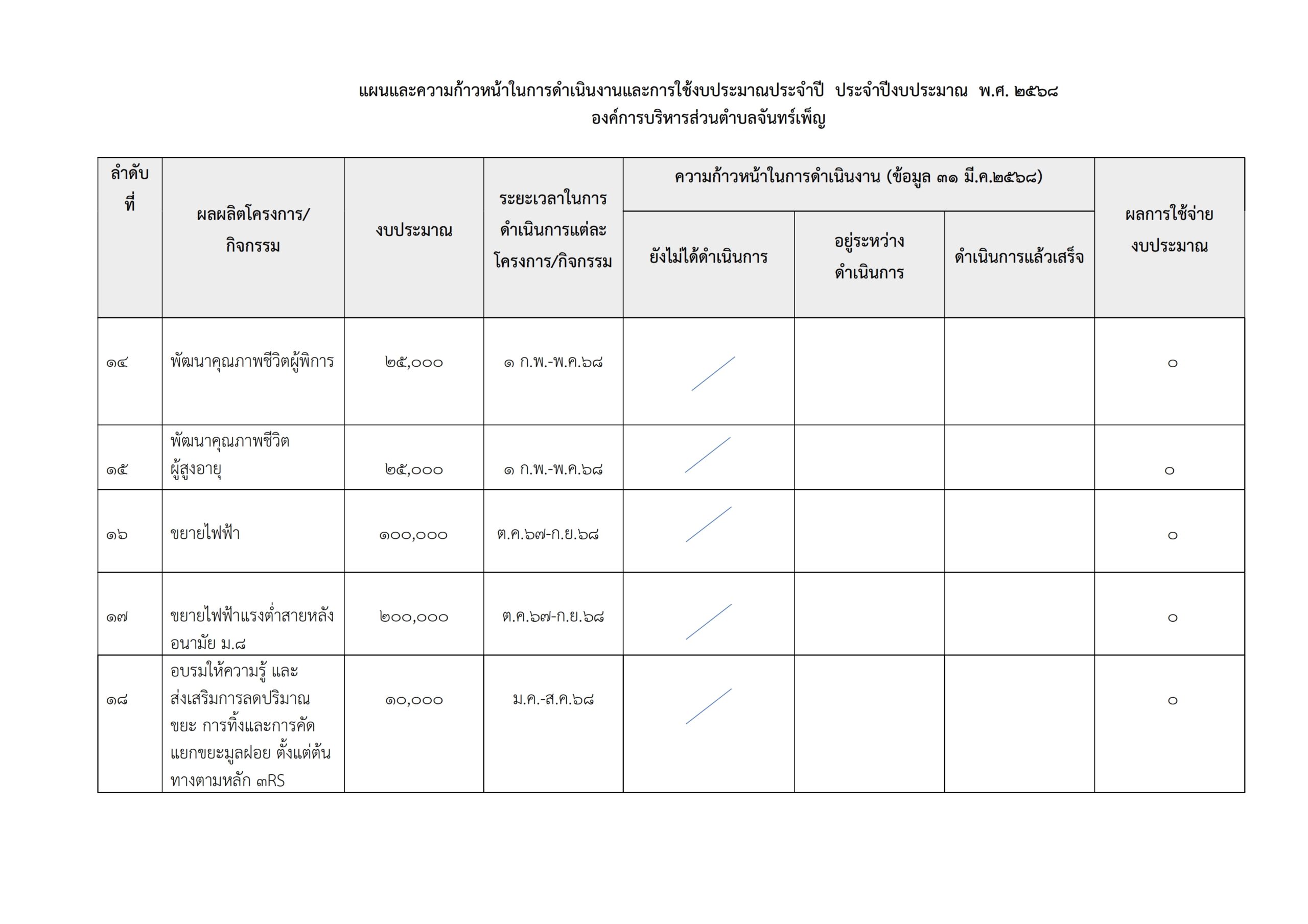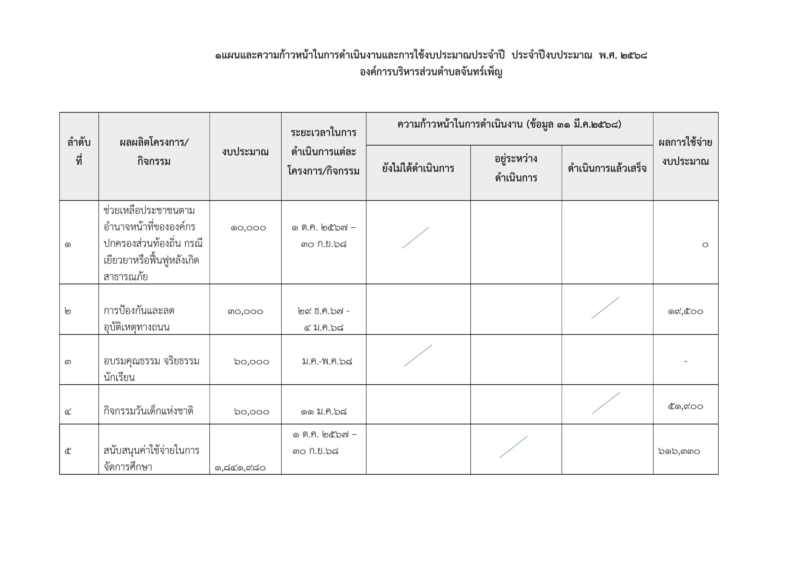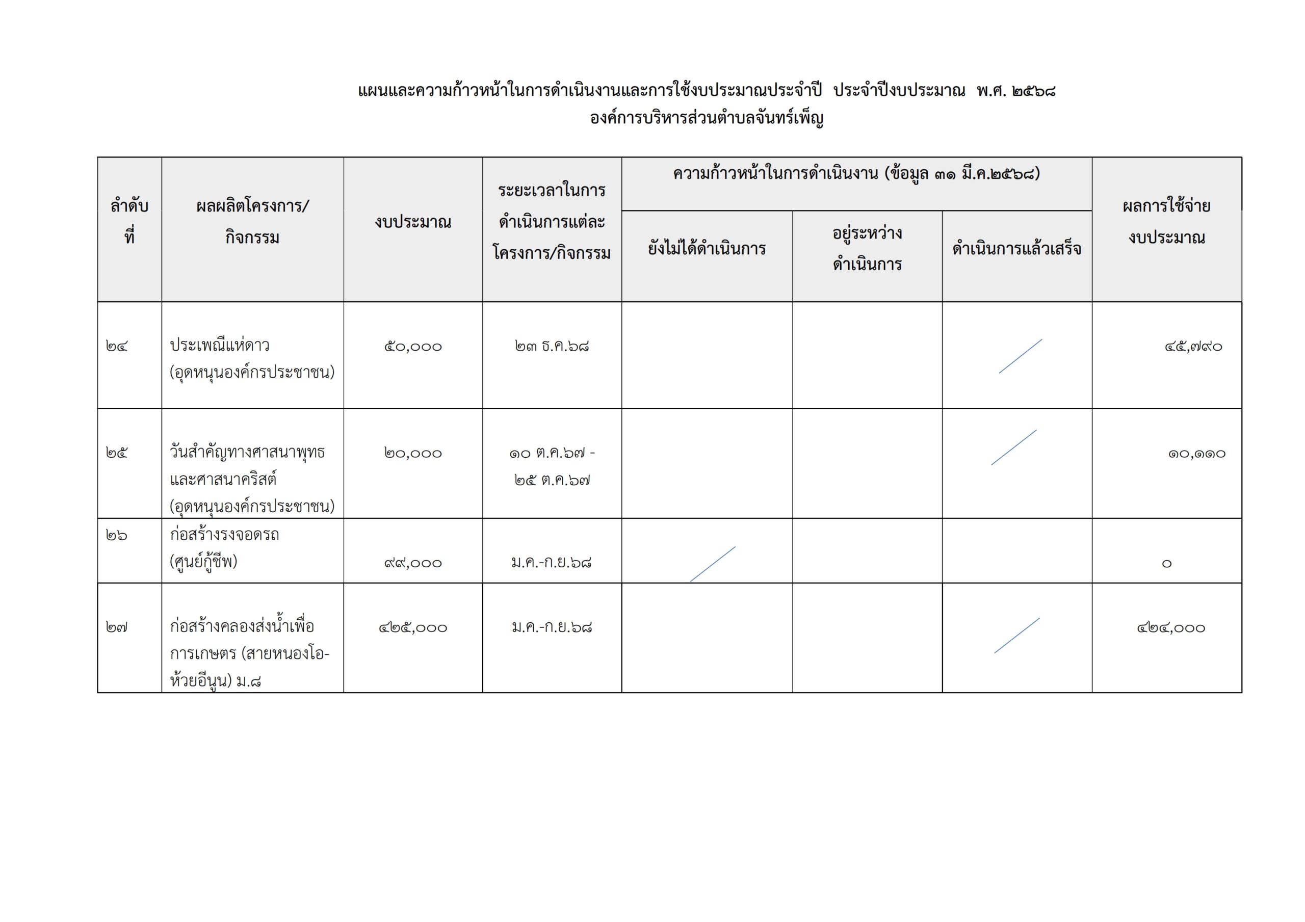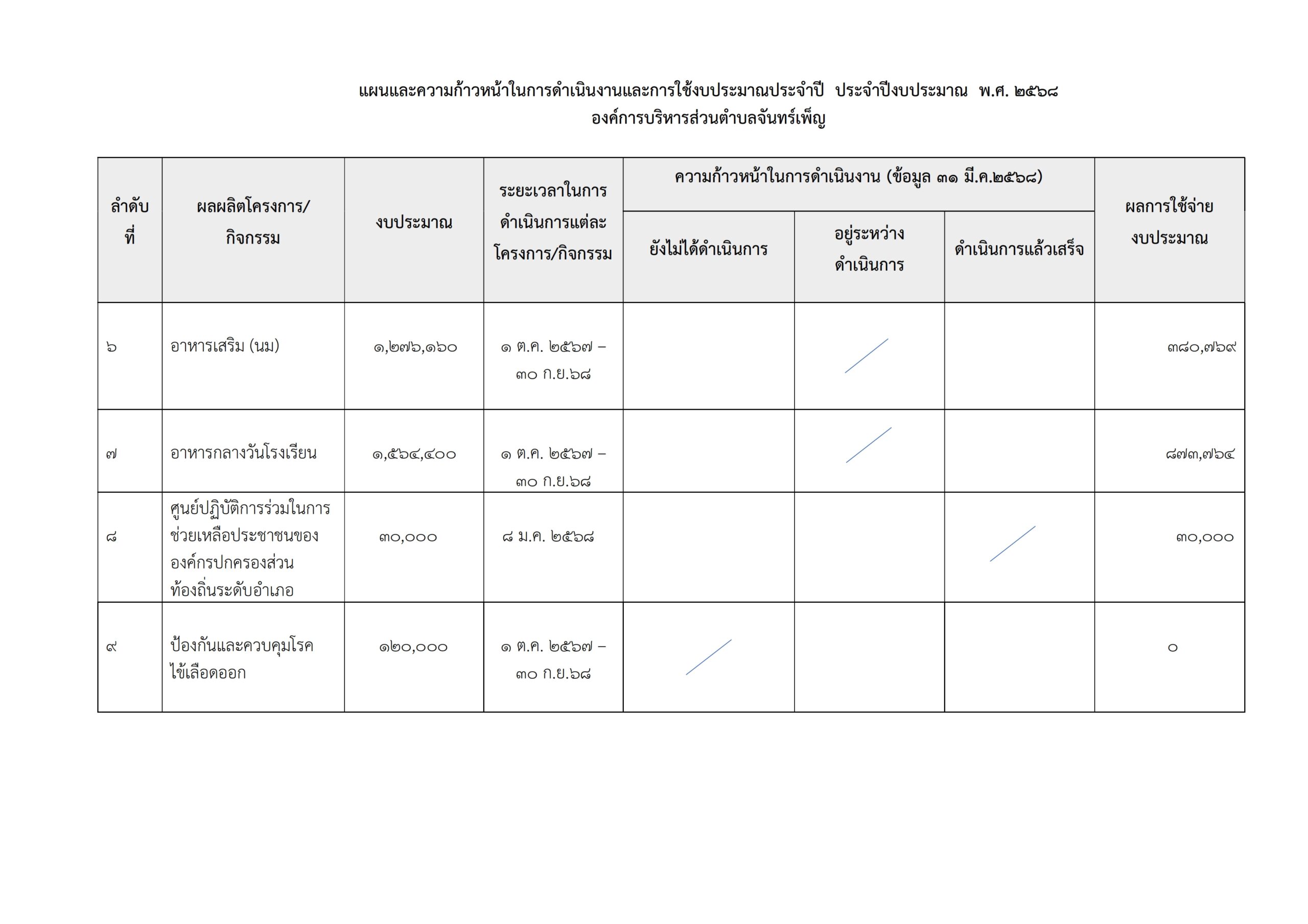 O6.แผนและความก้าวหน้าในการดำเนินงานและการใช้งบประมาณประจำปี พ.ศ.2568 1 เมษายน 6813 มิถุนายน 25อบต. จันทร์เพ็ญแผนดำเนินงาน แผนและความก้าวหน้าในการดำเนินงานและการใช้งบประมาณประจำปี 2568 ข้อมูล ณ วันที่31 มีนาคม พ.ศ.2568 Loading... Taking too long? Reload document | Open in new tab ดาวน์โหลดเอกสาร.. อ่านแล้ว : 495 Facebook iconFacebookTwitter iconTwitterLINE iconLine