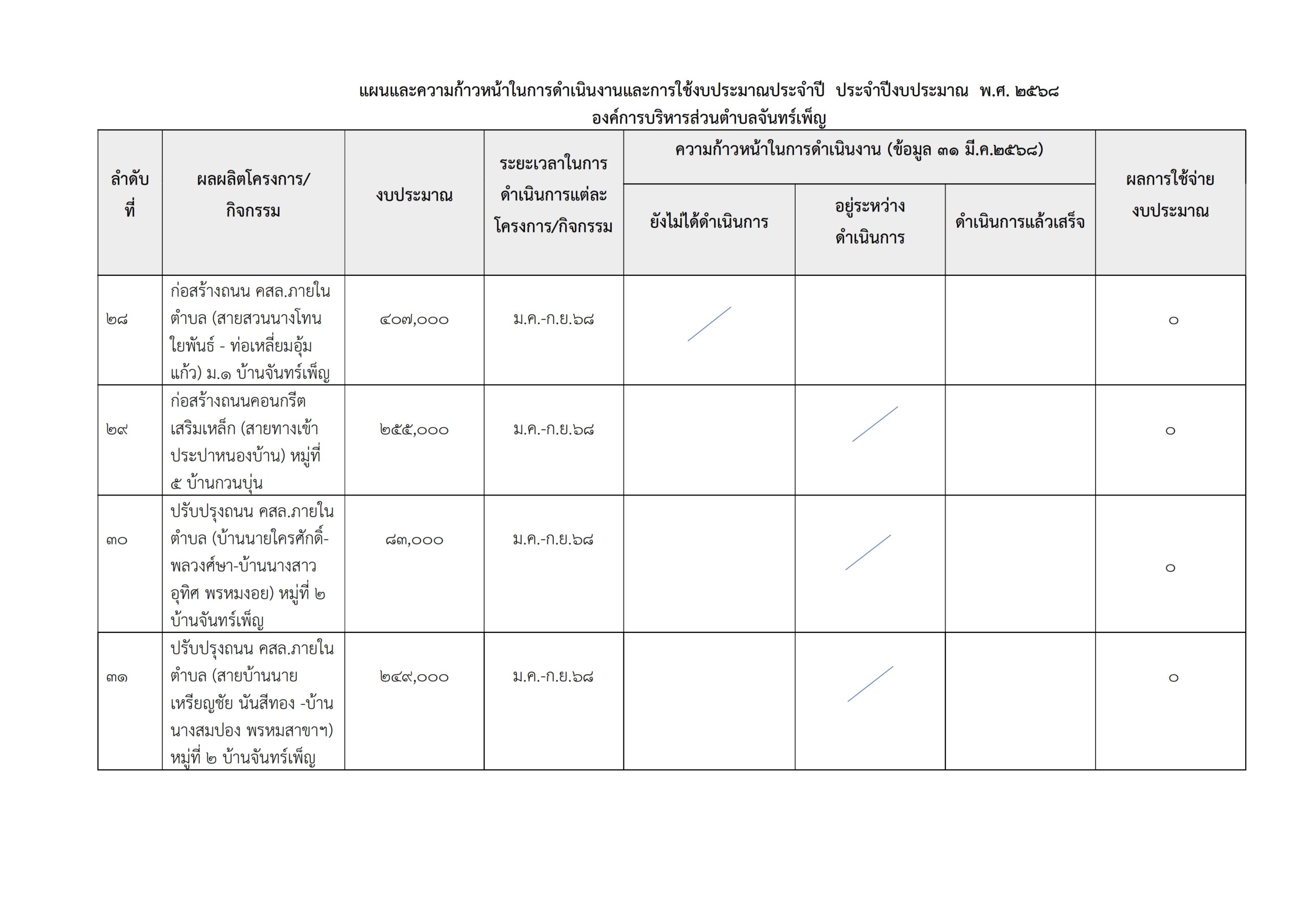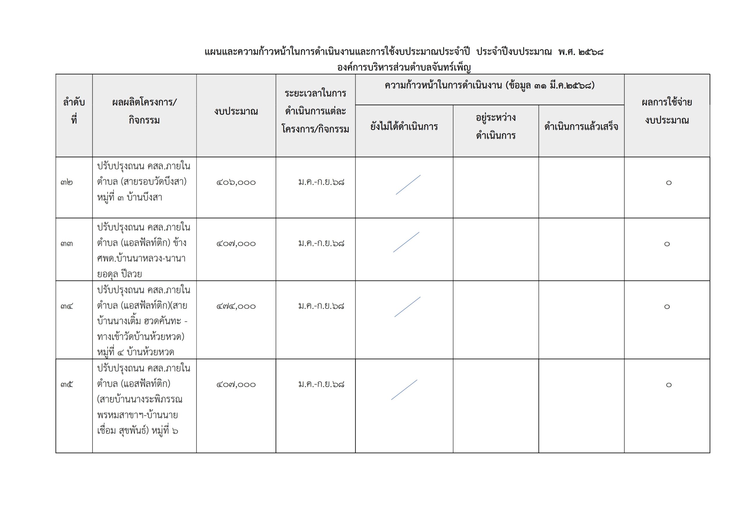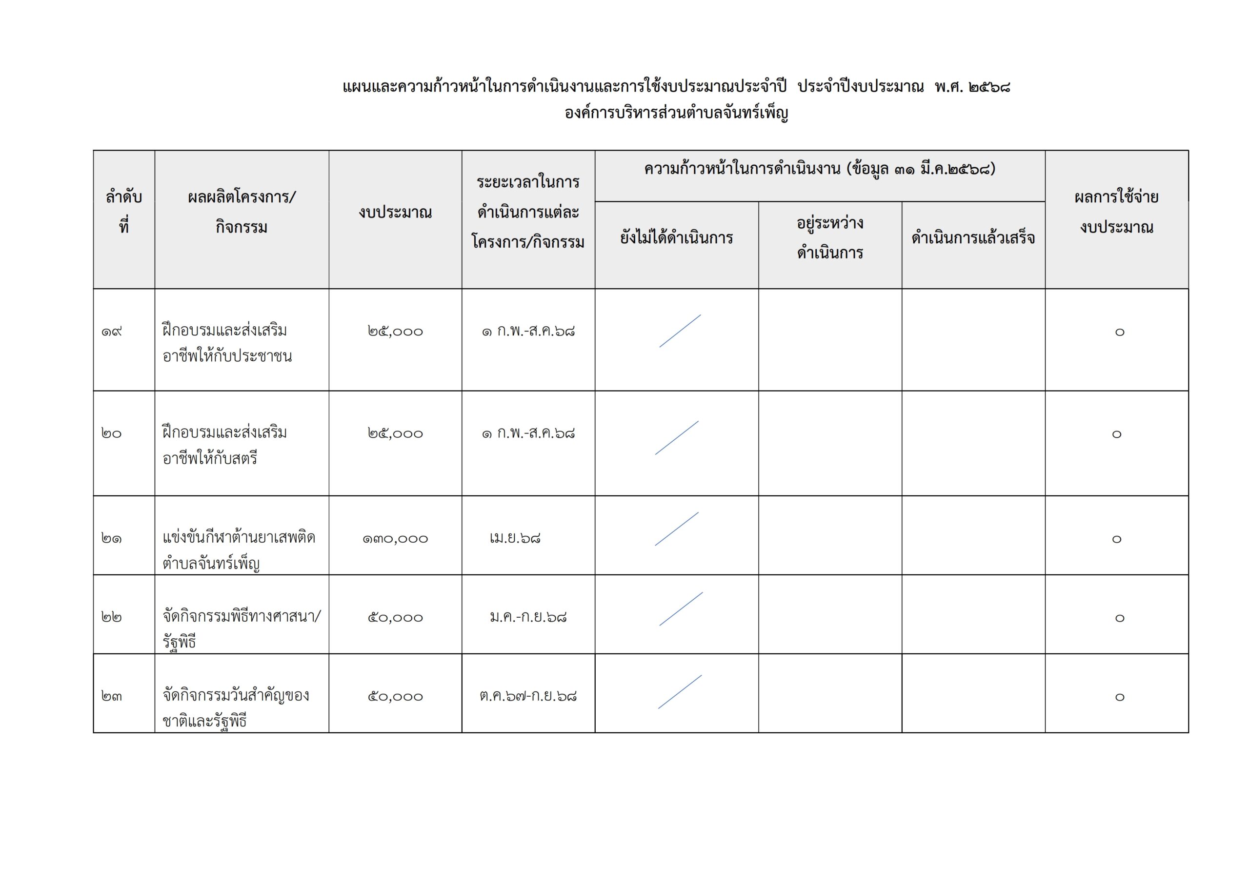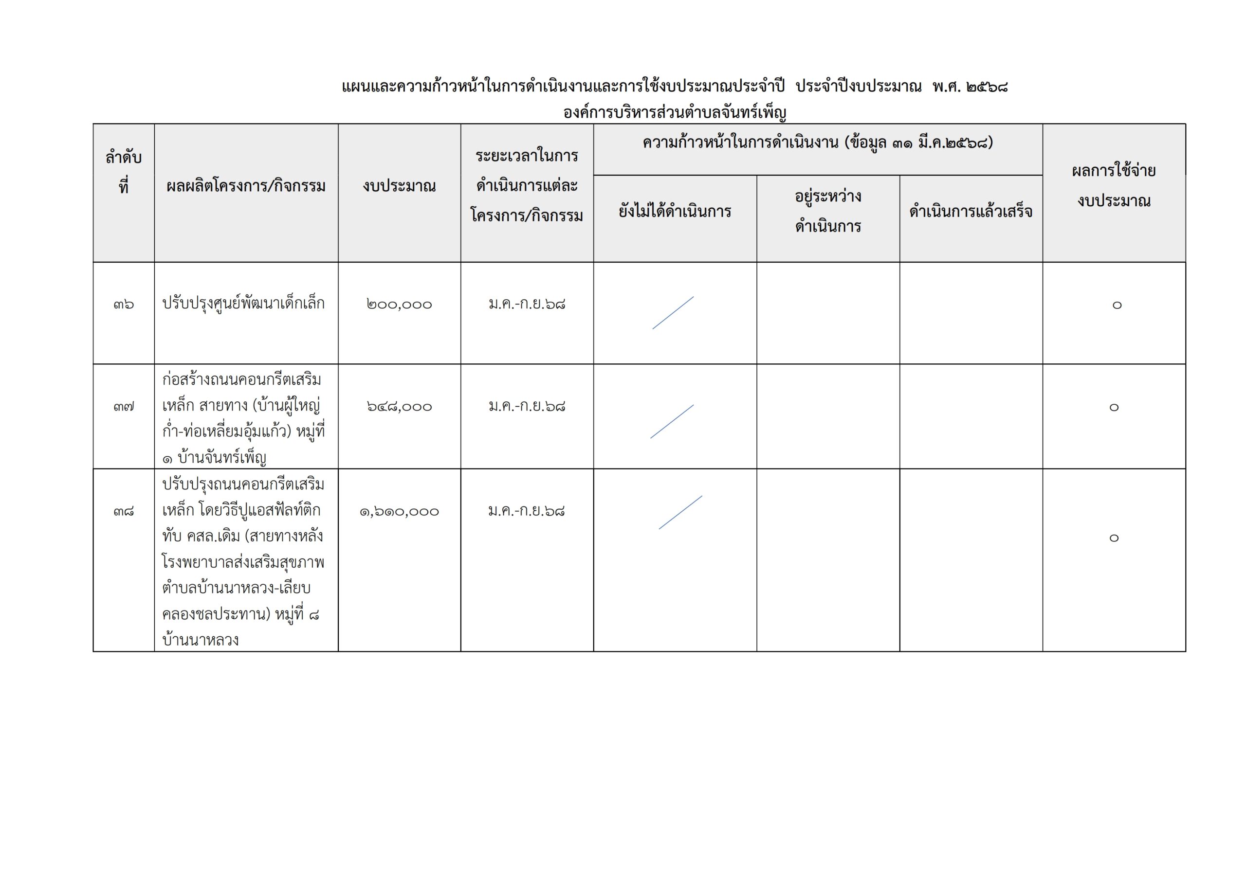 O6.แผนและความก้าวหน้าในการดำเนินงานและการใช้งบประมาณประจำปี พ.ศ.2568 1 เมษายน 6813 มิถุนายน 25อบต. จันทร์เพ็ญแผนดำเนินงาน แผนและความก้าวหน้าในการดำเนินงานและการใช้งบประมาณประจำปี 2568 ข้อมูล ณ วันที่31 มีนาคม พ.ศ.2568 Loading... Taking too long? Reload document | Open in new tab ดาวน์โหลดเอกสาร.. อ่านแล้ว : 495 Facebook iconFacebookTwitter iconTwitterLINE iconLine